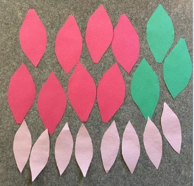OnceĀ you have the templates, your Sprout can trace them on the paper. They will need 8 red, and three green shapes of the larger bracts, and 8 shapes of the smaller contrasting color.Ā